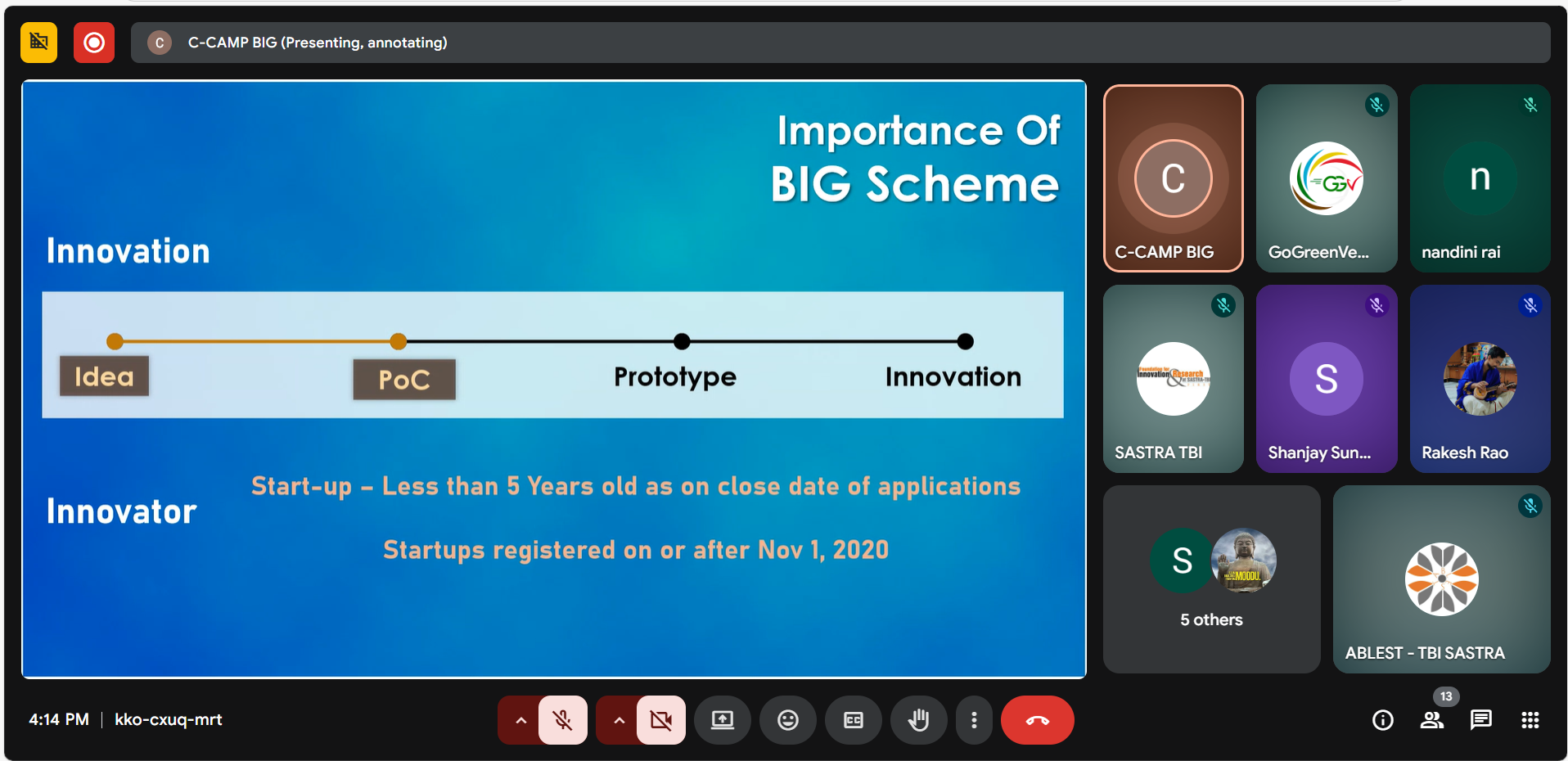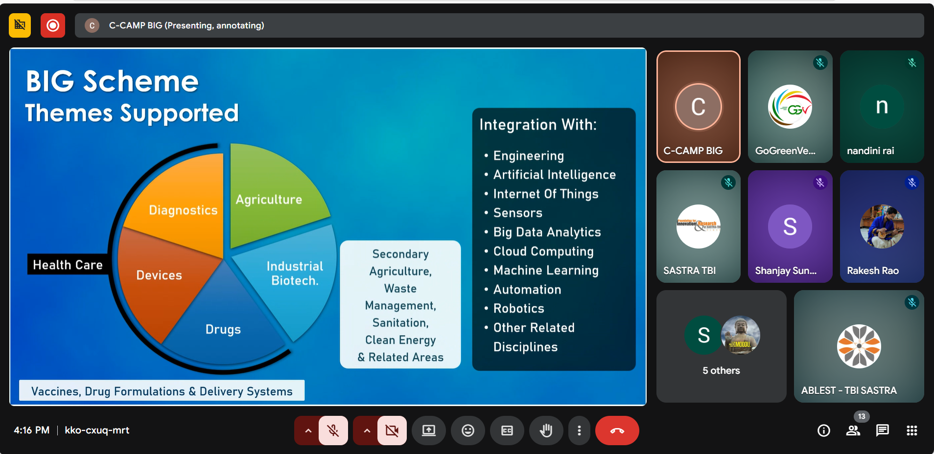 An interactive session was conducted with C-CAMP discussing the BIG Scheme 25th Call - via online mode.