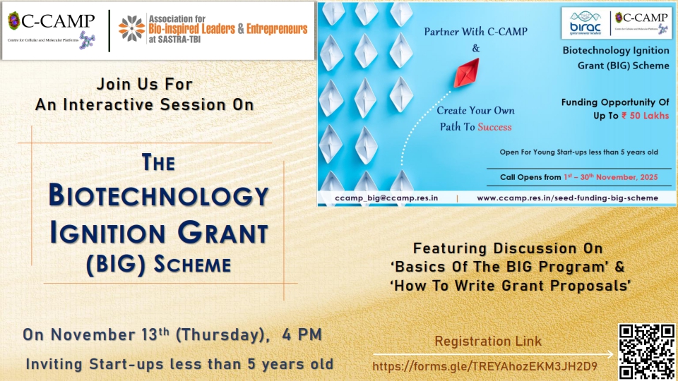 An interactive session was conducted with C-CAMP discussing the BIG Scheme 25th Call, held on 13 Nov, 2025