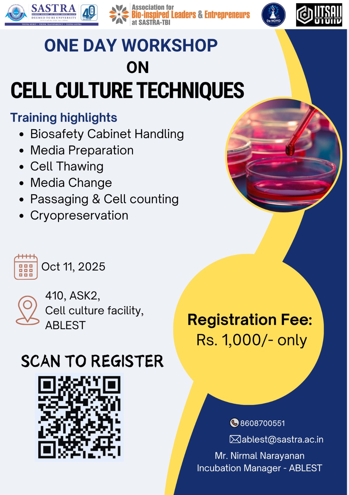 One Day Workshop on Cell Culture Techniques has been successfully organized by ABLEST as part of the UTSAV event.