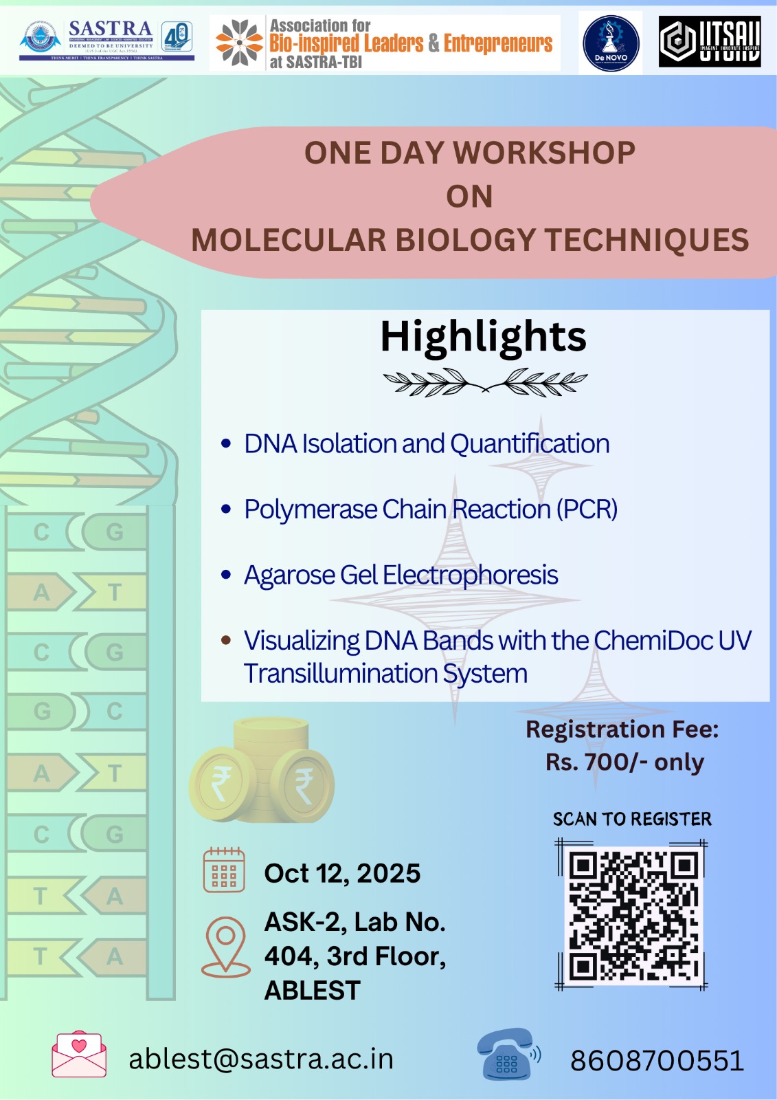 One Day Workshop on Molecular Biology Techniques has been successfully organized by ABLEST as part of the UTSAV event.